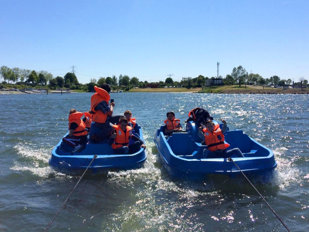 Met de waterfiets is het de eenvoudigste manier om het water op te gaan. Je gaat lekker zitten en trapt een rondje. Niet iedereen hoeft even sportief of mobiel te zijn, er trappen twee personen.